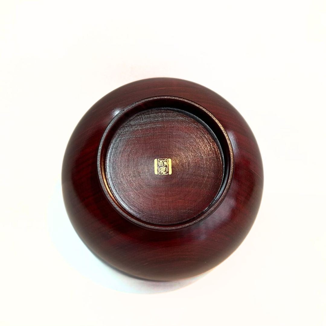 木地、塗からすべて国産手作りの木製桜漆塗で安心、伝統の薄挽きで 木目が茜色に美しく鮮やかです サイズ:直径10.5cmX高さ6.5cm